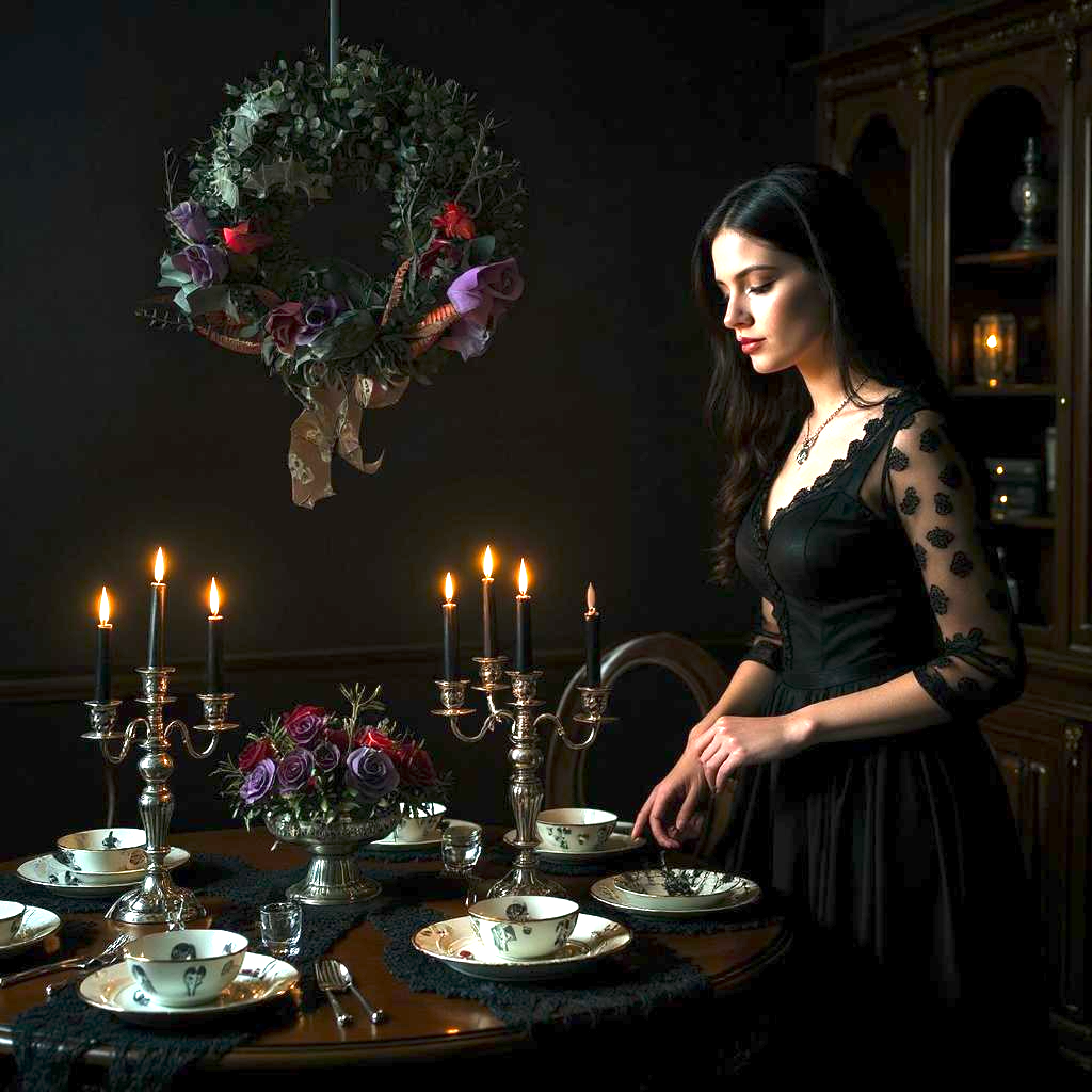 Elegant yet unmistakably eerie, this handcrafted wreath brings gothic charm and a whisper of the supernatural to your Halloween décor. Ideal for front doors, mantelpieces, or moonlit hallways, it sets the perfect tone for a season of enchantment and mystery.